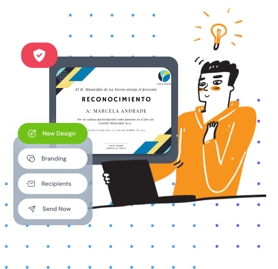 Customize your certificate with a simple drag and drop tool to fit your specific needs and issue certificates in just a few minutes.